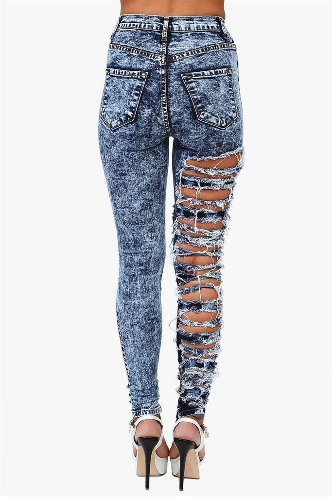 Blue Acid Washed Ripped Jeans - Dark Wash
